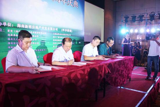 內(nèi)蒙古農(nóng)牧業(yè)產(chǎn)業(yè)化龍頭企業(yè)協(xié)會(huì)執(zhí)行會(huì)長(zhǎng)林永亮、內(nèi)蒙古新蒙商聯(lián)合會(huì)秘書(shū)長(zhǎng)馬廣、海南省內(nèi)蒙古商會(huì)執(zhí)行秘書(shū)長(zhǎng)高華章、內(nèi)蒙古保全農(nóng)產(chǎn)品科技發(fā)展有限公司總經(jīng)理白龍簽署了內(nèi)蒙古海南綠色產(chǎn)品雙向輸出合作協(xié)議