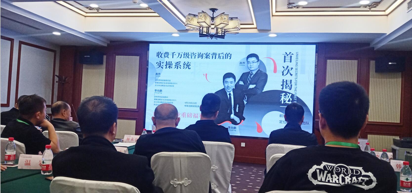 2021419日上午,由內(nèi)蒙古農(nóng)牧業(yè)產(chǎn)業(yè)化龍頭企業(yè)協(xié)會和上海黑蝶戰(zhàn)略定位主辦,呼市成略定位咨詢承辦的前特勞特定位首席團(tuán)隊-首次揭秘“收費千萬級咨詢案背后的實操系統(tǒng)”課程在呼和浩特市賓悅大酒店舉辦。協(xié)會執(zhí)行會長林永亮應(yīng)邀參加本次課程。