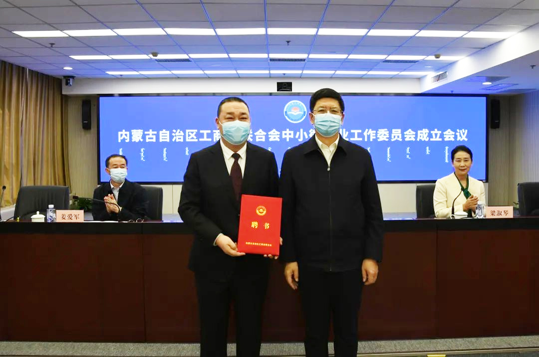 會上,內(nèi)蒙古工商聯(lián)黨組成員、副主席姜愛軍宣讀《內(nèi)蒙古自治區(qū)工商業(yè)聯(lián)合會關(guān)于成立自治區(qū)工商聯(lián)中小微企業(yè)工作委員會的決定》。聘任內(nèi)蒙古農(nóng)牧業(yè)產(chǎn)業(yè)化龍頭企業(yè)協(xié)會會長、錫林郭勒盟羊羊牧業(yè)股份有限公司董事長周勇為內(nèi)蒙古工商聯(lián)中小微企業(yè)工作委員會主任,聘任內(nèi)蒙古宇航人高技術(shù)產(chǎn)業(yè)有限責(zé)任公司董事長邢國良、呼和浩特市順友汽車租賃有限責(zé)任公司總經(jīng)理賈榮、內(nèi)蒙古蒙源文化發(fā)展有限公司董事長吳雙鷹等為副主任,聘任內(nèi)蒙古工商聯(lián)經(jīng)濟部部長董維民、內(nèi)蒙古金廈建筑工程有限公司董事長金玉虎、錫林郭勒盟羊羊牧業(yè)股份有限公司副總經(jīng)理袁軍為秘書長、副秘書長。并向自治區(qū)工商聯(lián)中小微企業(yè)工作委員會主任、副主任、秘書長頒發(fā)了聘書。