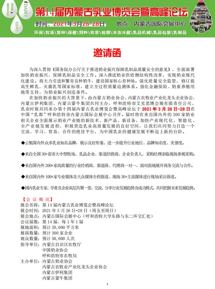 第14屆內蒙古乳業(yè)博覽會暨高峰論壇邀請函