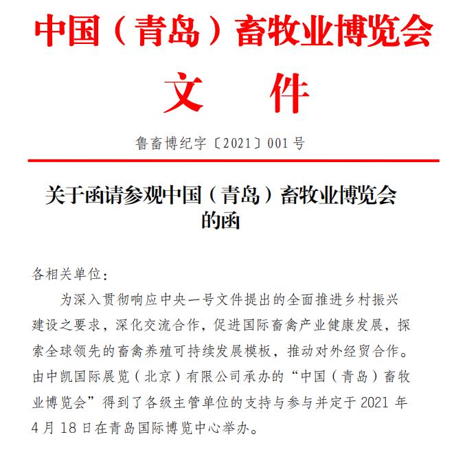 關于函請參觀中國(青島)畜牧業(yè)博覽會的函