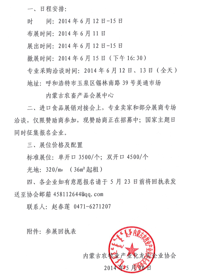 關于參加第一屆內(nèi)蒙古國際食品貿(mào)易對接會的通知