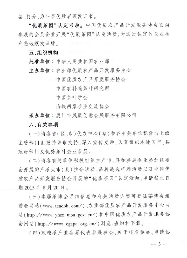 關(guān)于舉辦第三屆中國茶葉博覽會(huì)的通知