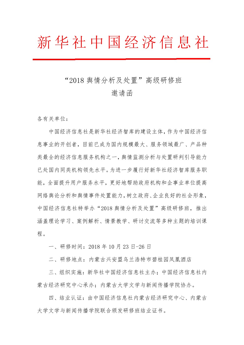 “2018輿情分析及處置”高級研修班邀請函