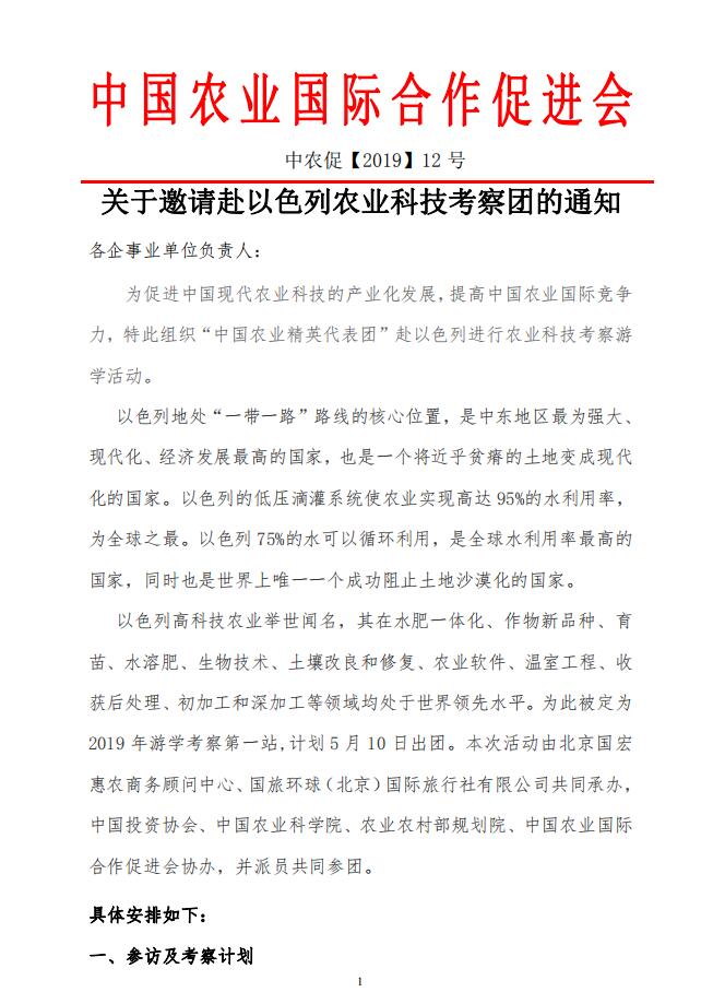 關(guān)于邀請赴以色列農(nóng)業(yè)科技考察團(tuán)的通知