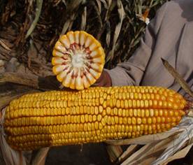 春播區(qū)從出苗至成熟126天左右。株型緊湊,株高271-286cm,穗位96cm。穗行數(shù)16-18 行,紅軸,果穗整齊、均勻;出籽率高達(dá)90%,軸細(xì)、粒深;長勢整齊一致,不空桿,產(chǎn) 量年度間差異小,穩(wěn)產(chǎn)性好。