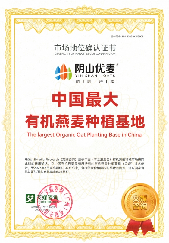 陰山優(yōu)麥以黃金產(chǎn)區(qū)、全產(chǎn)業(yè)鏈和品質(zhì)創(chuàng)新為核心競(jìng)爭(zhēng)力,不僅重塑了中國(guó)有機(jī)燕麥行業(yè)的格局,更以市場(chǎng)銷(xiāo)量與社會(huì)責(zé)任的雙重?fù)?dān)當(dāng),成為國(guó)產(chǎn)農(nóng)產(chǎn)品品牌崛起的典范。
